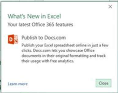 Second, because your users will be receiving a pop-up notification to advertise this feature. So even if you block docs.com via a URL filter, you cannot suppress the what’s new dialog box.