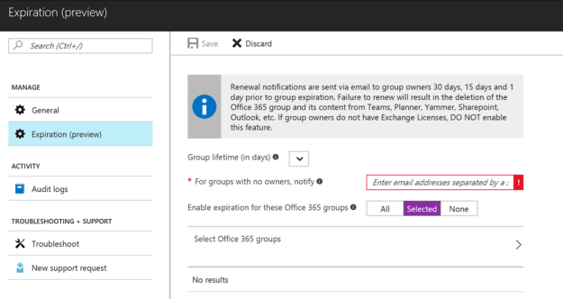 What’s really needed is an exclusion list, ex: Expire all groups EXCEPT for these 5 that I really really care about. All the others, let the owners decide if they want to keep them, but these 5, I keep important stuff in there, and I don’t want to sweat it about missing an email and potentially losing all that information.