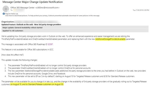 Here is the email all Office 365 administrators should have received relating to this roadmap ID 52597