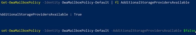 The old way of hardening will no longer work using these cmds: set-owamailboxpolicy -DropboxAttachmentsEnabled $false -BoxAttachmentsEnabled -GoogleDriveAttachmentsEnabled $false -ThirdPartyAttachmentsEnabled $false