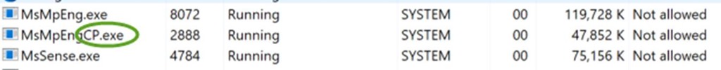 I created some fresh Win10 VM’s with Defender and did not see the CP.exe tailing process name.