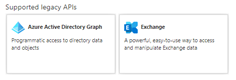 - Scroll to the bottom of the Request API permissions pane and click on Exchange under the Supported legacy APIs section.
