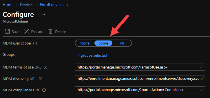 The second option is to limit MDM auto enrollment is to scope specific groups rather than ALL users.