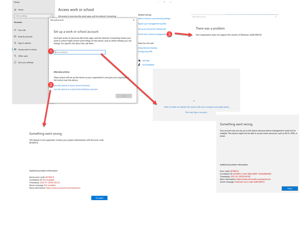 “MDM Enroll: Server Returned Fault/Code/Subcode/Value=(DeviceNotSupported) Fault/Reason/Text=(Device Identifier not preregistered).”