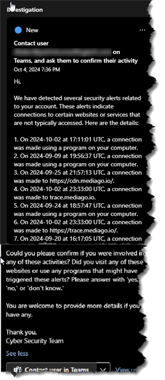 2. The KQL syntax generated in Advanced Hunting is still not accurate, and this is the biggest reason why I cannot recommend CFS to Level 1 SOC Analysts at this time.