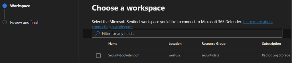 The first step is to browse to the Defender XDR Portal and then click “Connect a workspace”