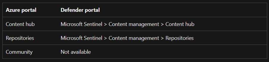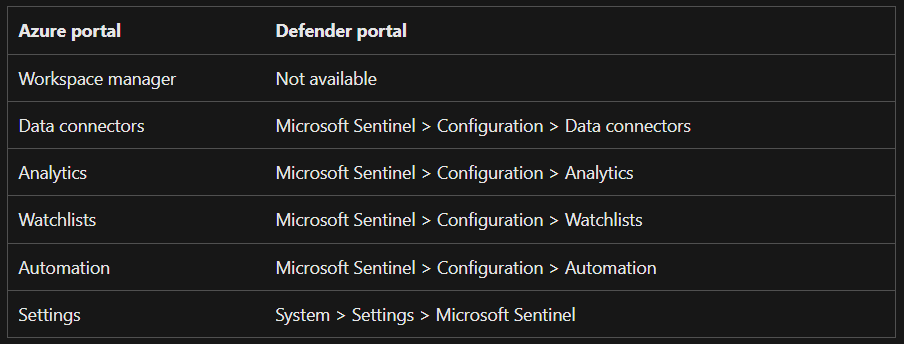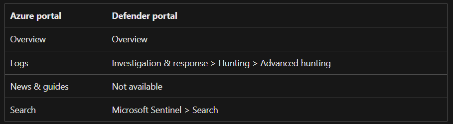 Otherwise the Documentation page does a great job at mapping where to find Sentinel features inside the new Unified Portal: